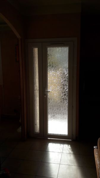 Pour embellir la porte fenêtre intermédiaire de l'entrée, nous avons supprimer le seuil en partie basse et prévu un vitrage Delta clair du plus bel effet.