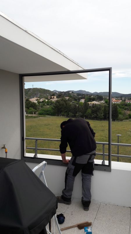 Cette menuiserie fabriquée en France et qui plus est sur mesures, permet de diminuer les méfaits du mistral sur ce côté de la terrasse. Laquage gris 7037 garantie 10 ans, vitrage feuilleté, double parclosage...Tout est prévu sur ce châssis pour que nos clients passent de supers moments sur leur terrasse