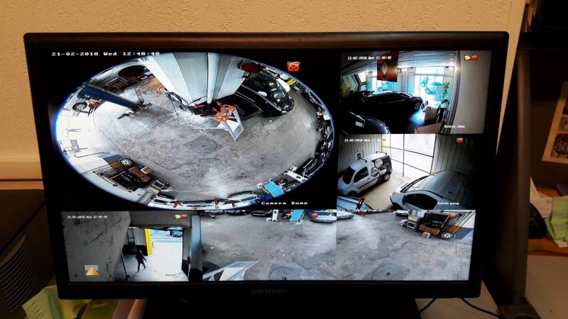 Pour se faire nous avons prévu 3 caméra 4MP et un dôme 12 MP à 360°. L'écran de contrôle de 22" permet à nos clients de visualiser ce qu'il se passe dans leur garage depuis leur bureau. L'application mise en place leur permet également de visualiser en temps réel 24h/24 ce qu'il s'y passe.