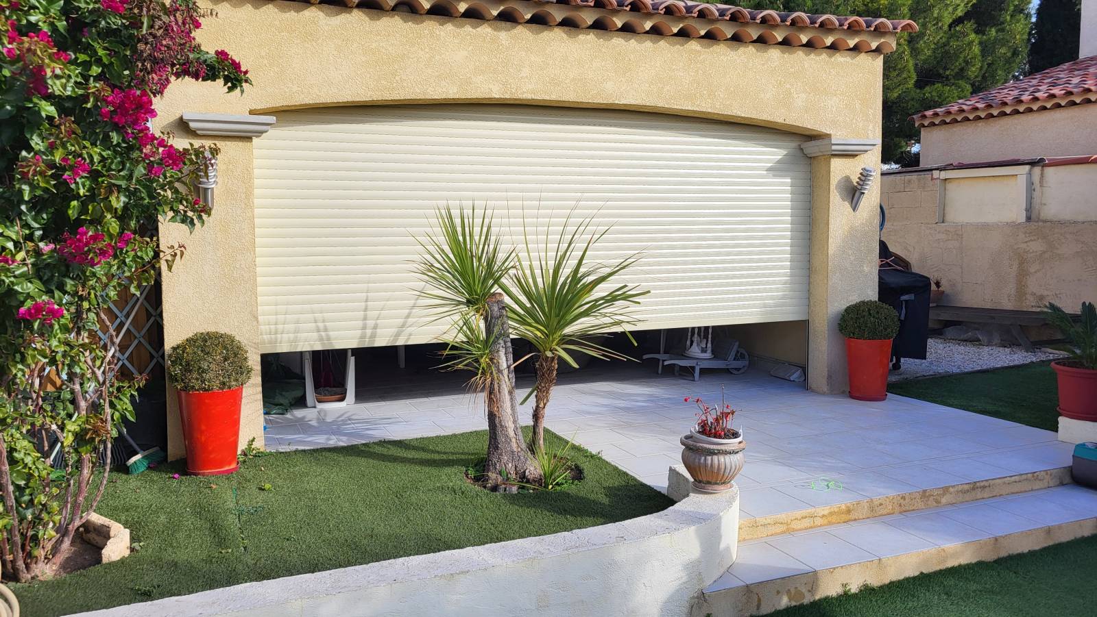 Ce volet roulant en aluminium de plus de 4m50 fabriqué sur-mesure dans notre usine provençale, est pourvu de lames renforcées de 55mm, d'une motorisation Somfy IO RS100 dernière génération permettant à notre cliente de manipuler son volet à distance sans se déplacer...et sans bruit puisque ce moteur est le plus silencieux du marché !