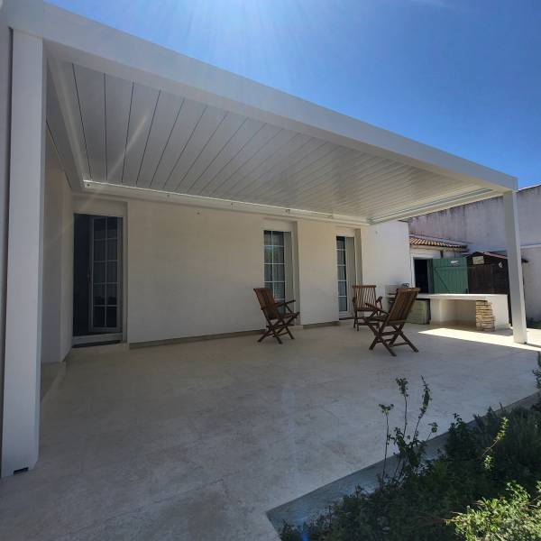 Soucis du détail, nous avons prévu sur toute l'ossature de notre pergola bioclimatique, un coloris gris anthracite Ral 7016 texturé et sur les lames un coloris Blanc Ral 9010. Le résultat est de toute beauté et permet à nos clients de profiter de leur merveilleuse terrasse dans les meilleures conditions possibles.