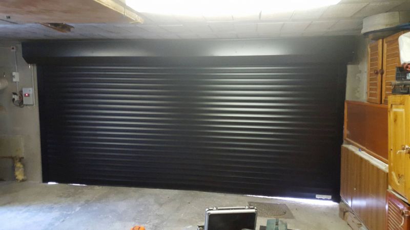 Nous avons remplacé une porte de garage métallique très vétuste pour y installer une porte de garage enroulable en Aluminium de 4m50 de large.