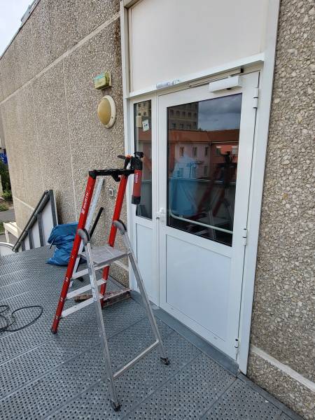 Ici une réalisation d'une porte technique en Aluminium avec chassis fixe latéral effectué dans un établissement hospitalier situé à Marseille 13013.