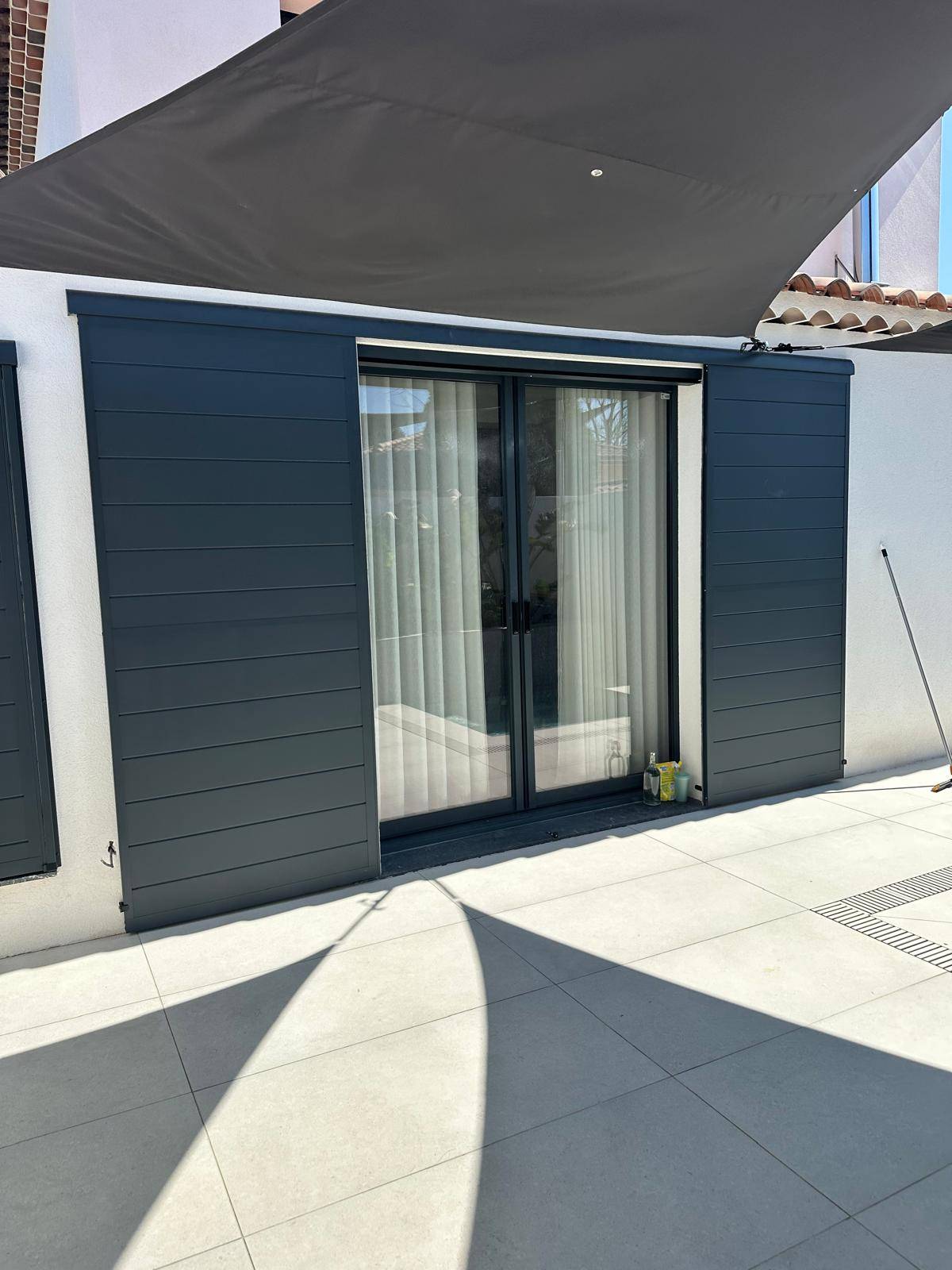 Voici une réalisation de 2 volets coulissants électriques en aluminiumextrudé effectuée à Allauch 13190.