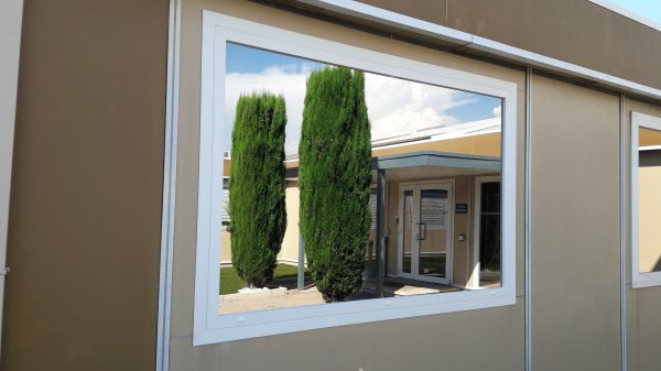 Nous avons installé pour les 2 salles de réunion de notre client industriel de Gardanne 13120, 4 châssis fixe en PVC blanc avec vitrage Antelio fumé miroir, retardateur d'effraction classe 5.