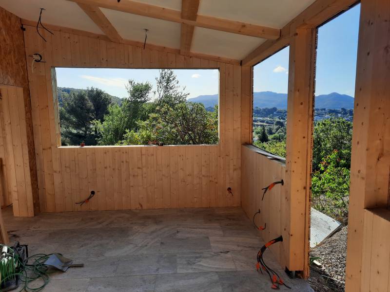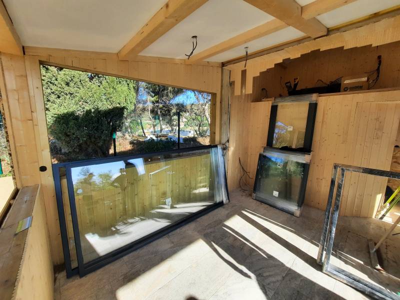 Cette réalisation a été effectuée sur la commune Château Gombert Marseille 13013 sur une extension d'une maison en bois réalisée par la société GSA Bâtiment. Notre travail consistait à isoler cette partie de la maison à l'aide de nos menuiseries alu à haut pouvoir isolant, coulissants, porte et châssis fixes.