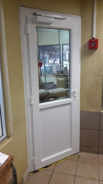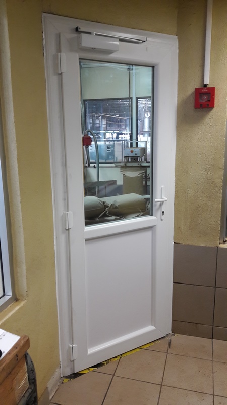 Les 2 fenêtres en PVC répondent parfaitement au cahier des charges exigé par l'usine avec notamment des profils 100% renforcés en acier galvanisé, un double vitrage trempé retardateur d'effraction et 4 points de fermeures. La porte quant à elle, est une porte technique, renforcée également à 100 %, avec un ferme porte 120Kg, un seuil PMR extra plat et un double vtrage feuilleté.