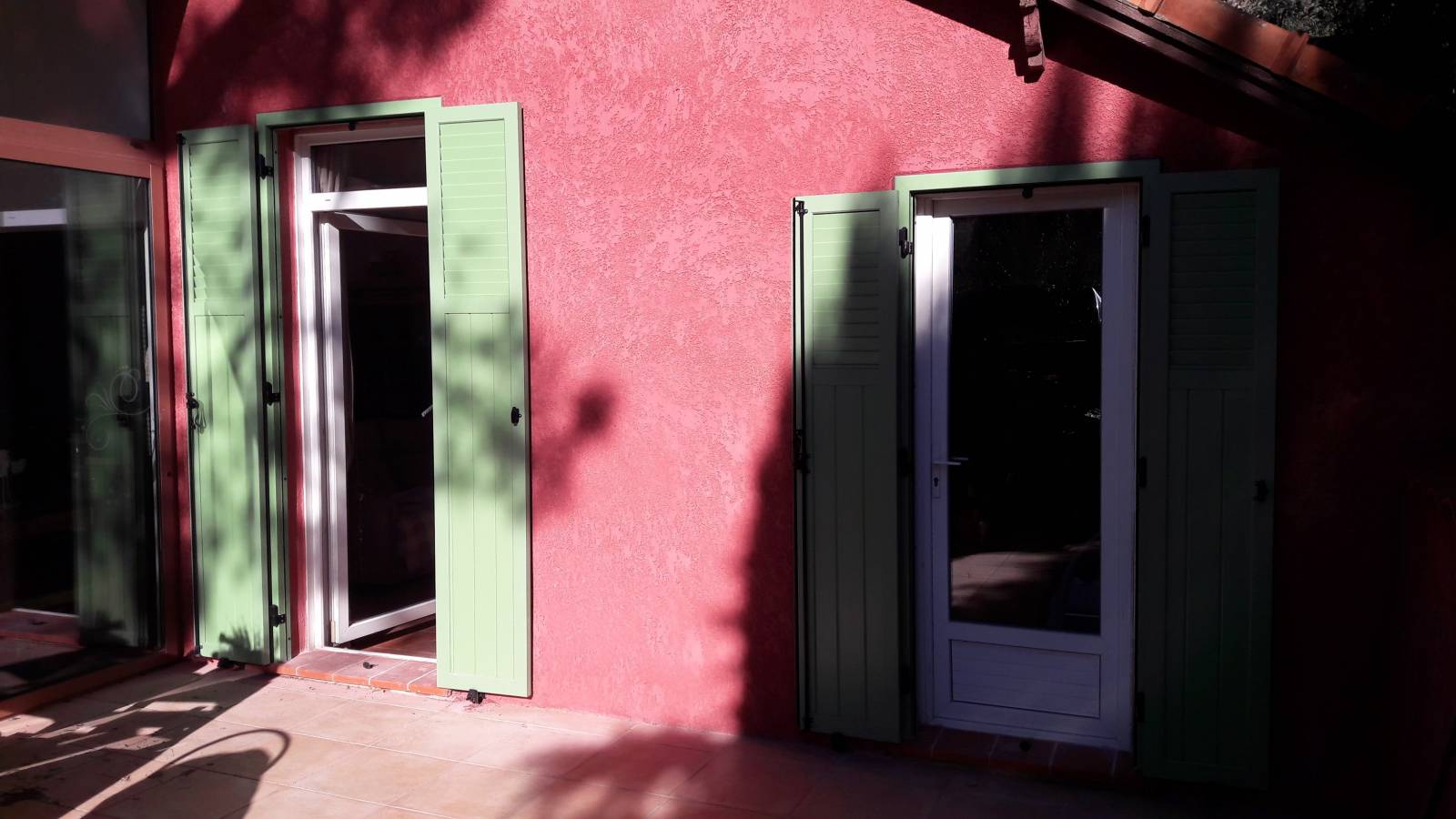 Voici une réalisation de volets en aluminium extrudé montés sur précadres à Marseille 13013.