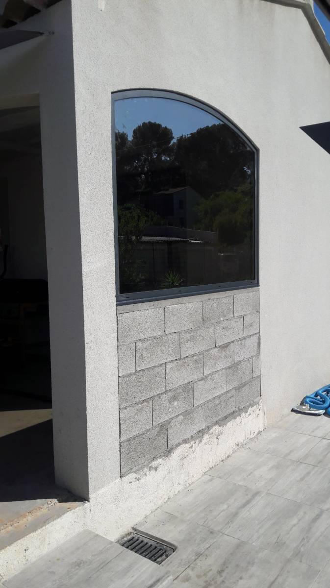 Afin de pouvoir commencer la fermeture de leur terrasse, nos clients de Marseille 13013 nous ont contacté afin d'installer un châssis fixe en arc surbaissé, en aluminium coloris gris anthracite Ral 7016 texturé.