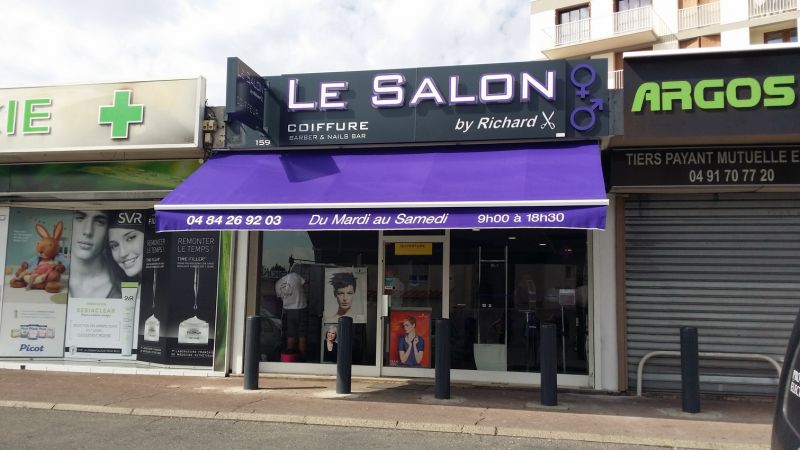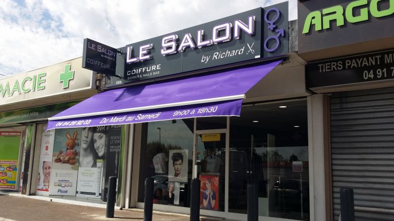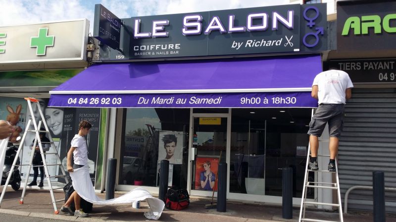 Nous avons installé sur la devanture de ce salon de coiffure de Marseille 13013, un store extérieur de 5m35 de large.