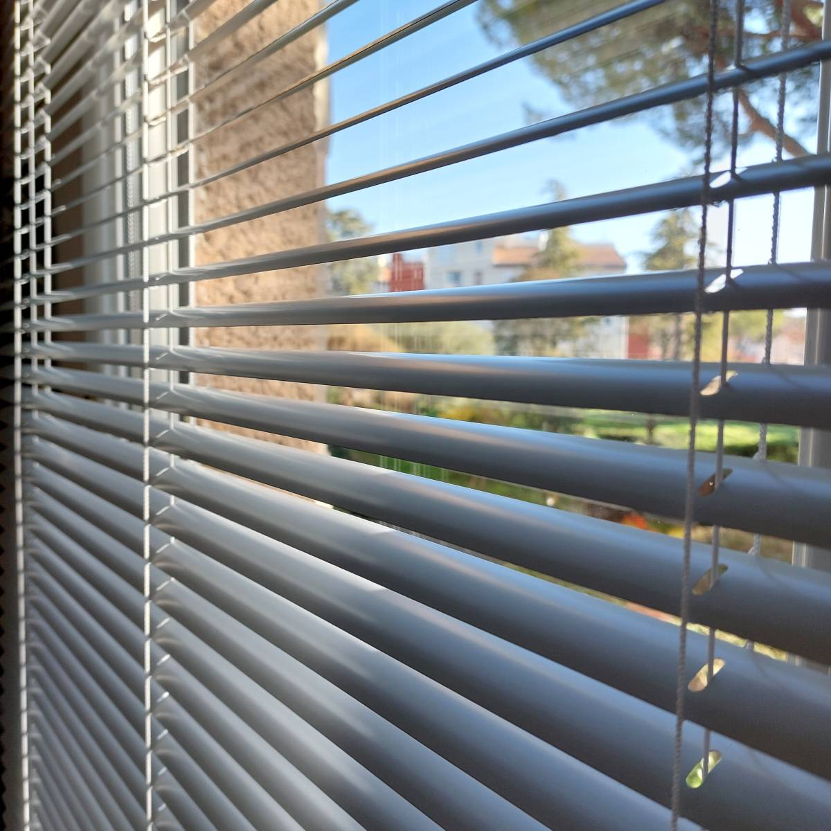 Nos stores vénitiens sont disponibles dans une variété de matériaux pour s'adapter à votre style et à vos besoins. Optez pour l'aluminium comme sur notre réalisation présentée ci dessus pour un look moderne et durable, ou choisissez le bois pour une touche chaleureuse et naturelle.
