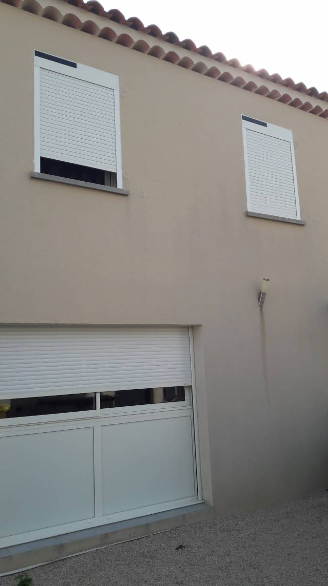 Ces volets solaires en aluminium de couleur blanc sont pourvu d'une motorisation Somfy radio, avec radio commande murale ainsi qu'une radio commande générale centralisée.