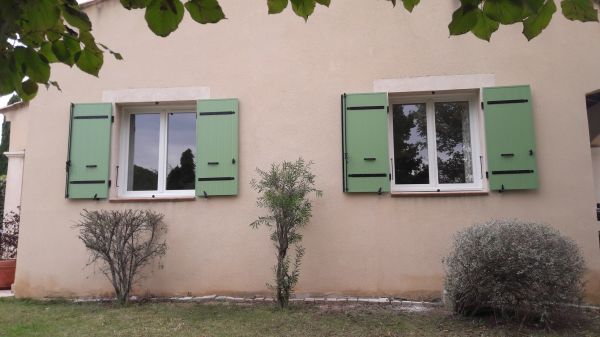 Nous avons installé pour nos clients de Bouc Bel Air 13320 des volets battants en aluminium isolé en remplacement d'anciens volets bois.