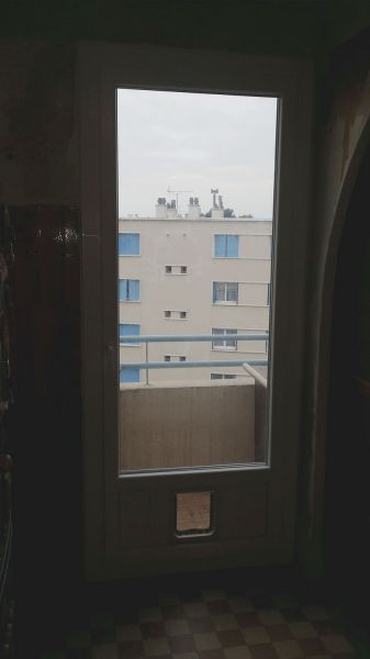 Pour être en respect de copropriété, nous avons prévu des panneaux de soubassement sur le coulissant Aluminium et sur la porte fenêtre PVC. Une chattière y a notamment été installée.